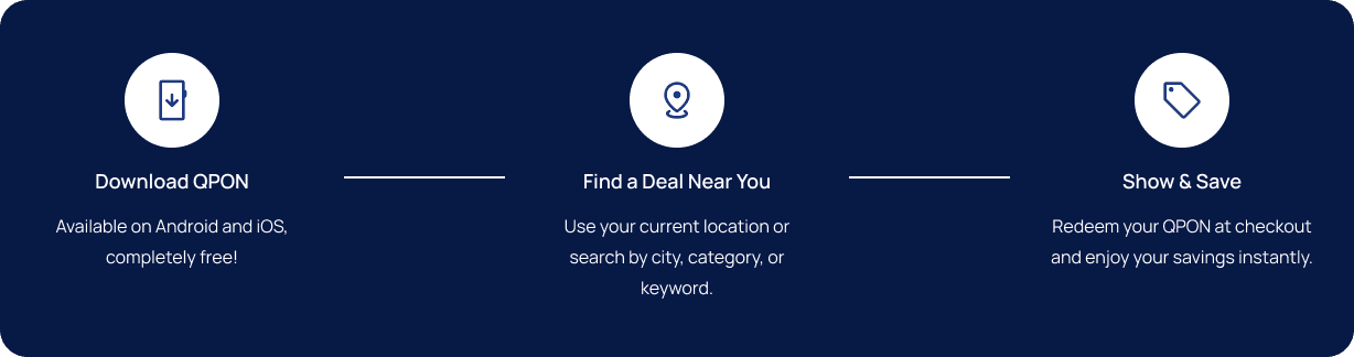 No scrolling for hours — QPON finds deals right where you stand.